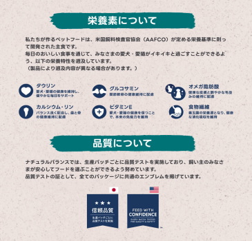 また、小麦、大豆、グルテンを含む穀物の消化が苦手な愛犬の健康維持に配慮し、グレインフリーのレシピに仕上げました。 |