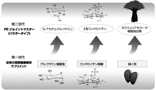 グルコサミンの体内変換型で、グルコサミンの約3倍の吸収率